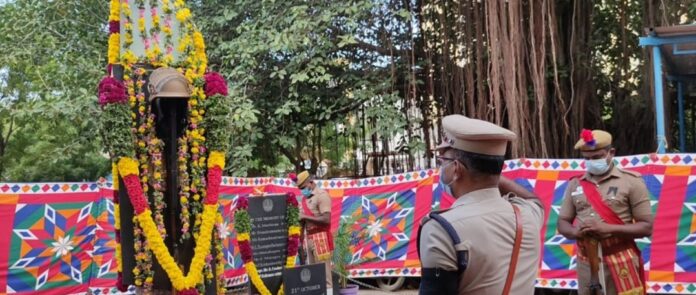 காவல்துறையில் வீரமரணமடைந்த காவலர்களின் தியாகத்தை நினைவு கூறும் வகையில் தூத்துக்குடி மாவட்டம், தென்பாகம் காவல் நிலையத்தில் இன்று மாவட்ட காவல் கண்காணிப்பாளர் எஸ். ஜெயக்குமார் தலைமையில் ‘காவலர் வீர வணக்க நாள்” உறுதிமொழி ஏற்று துப்பாக்கி குண்டுகள் முழங்க மரியாதை செலுத்தப்பட்டது.