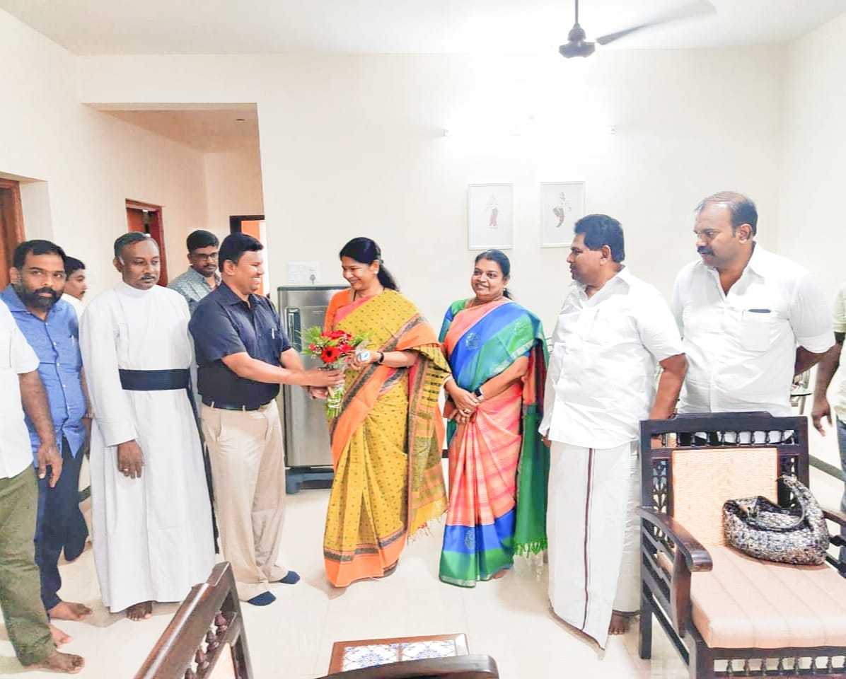 தூத்துக்குடி நாசரேத் திருமண்டல “லே” செயலர் கிப்சன் மற்றும் திருமண்டல நிர்வாகஸ்தர்கள், தூத்துக்குடி பாராளுமன்ற உறுப்பினர் கனிமொழி அவர்களை சந்தித்து வாழ்த்து பெற்றனர்.