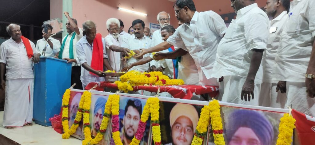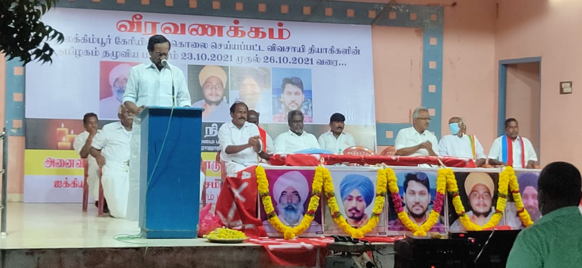 இதன் ஒரு பகுதியாக உத்திரபிரதேசம் மாநிலம் லக்கிம்பூரில் விவசாயிகள் போராட்டம் செய்தனர். அப்போராட்டத்தில் விவசாயிகள் மீது கார் ஏற்றி படுகொலை செய்யப்பட்டனர். அப்போராட்டத்தில் இறந்த ஐந்து விவசாயிகளின் அஸ்திக்கு நாகை மாவட்டம் வேதாரண்யத்தில் விவசாயிகள், இந்திய கம்யூனிஸ்ட், மார்க்சிஸ்ட் கம்யூனிஸ்ட் திமுக காங்கிரஸ் உள்ளிட்ட அரசியல் கட்சியினர் மற்றும் பொது நல அமைப்பினர் அஞ்சலி செலுத்தினர்.