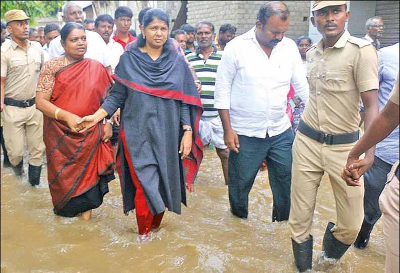 பின்னர் கனிமொழி எம்பி செய்தியாளர்களிடம் தெரிவித்ததாவது: தூத்துக்குடி மாவட்டத்தில் இந்த ஆண்டு எதிர்பாராத அளவுக்கு நேற்றைய தினம் மட்டும் பல்வேறு பகுதியில் பரவலாக மழை பெய்தது. ஓட்டப்பிடாரம், காயல்பட்டிணம், திருவைகுண்டம், தூத்துக்குடி மாநகராட்சி ஆகிய பகுதிகளில் அதிக அளவு மழை பெய்தது. இதன் காரணமாக மாநகராட்சி பகுதிகளில் ஒரு சில பகுதியில் சாலைகள் தண்ணீர் தேங்கியுள்ளது. தண்ணீரை அகற்றுவதற்கான பணிகள் அனைத்தும் நடைபெற்று வருகிறது. மாநகராட்சியில் 200 மோட்டார் தயாராக உள்ளது. தற்பொழுது 50 இடங்களில் மோட்டார் பொருத்தப்பட்டுள்ளது. 17 இடங்களில் மோட்டார்களுக்கு அறை கட்டப்பட்டுள்ளது.
