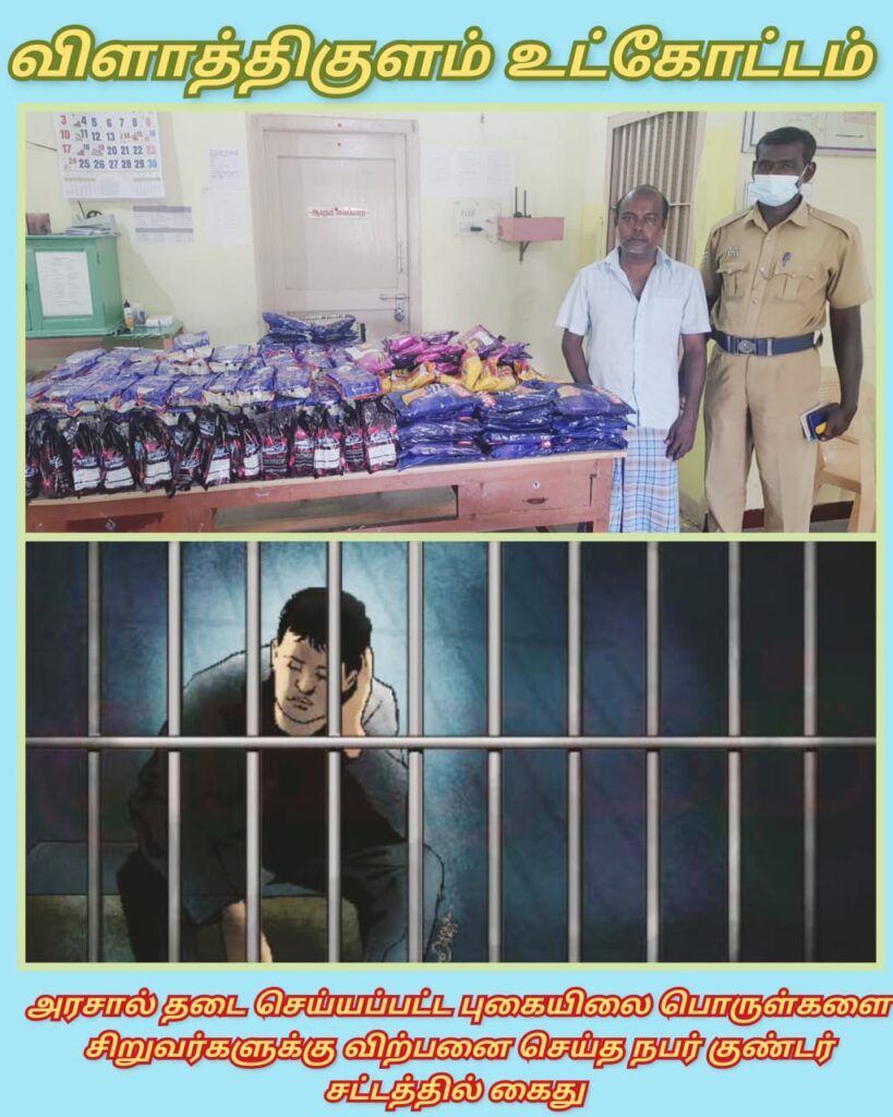 விளாத்திகுளம் உட்கோட்டத்தில் சிறுவர்களுக்கு புகையிலை விற்ற நபர் கோட்பா வழக்கில் குண்டர் தடுப்புச் சட்டத்தில் கைது செய்து அதிரடி நடவடிக்கை.