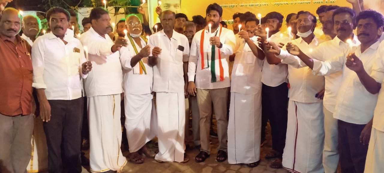 அறிவிப்பின் பெயரில் இன்று பானு பிருந்தாவன் ஹோட்டலில் வைத்து வேளாண் சட்டத்திற்கு எதிராக போராடி உயிரிழந்த 720 விவசாயிகளுக்கு தூத்துக்குடி தெற்கு மாவட்டம் சார்பில் தெற்கு மாவட்ட தலைவரும், திருவைகுண்டம் காங்கிரஸ் சட்டமன்ற உறுப்பினர் ஊர்வசி அமிர்தராஜ் தலைமையில் உயிரிழந்த விவசாயிகளுக்கு மெழுகுவர்த்தி ஏந்தி அஞ்சலி செலுத்தப்பட்டது.