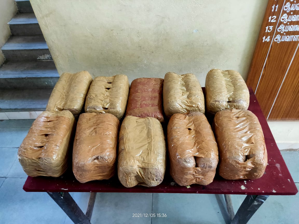 நாகப்பட்டினம் மாவட்டம் முழுவதும் கஞ்சா, குட்கா உள்ளிட்ட போதைப் பொருட்கள் கடத்தலை தடுக்க மாவட்ட காவல் கண்காணிப்பாளர் ஜவகர் தீவிர வாகன சோதனைக்கு உத்தரவிட்டார். இந்த நிலையில் நாகையை அடுத்த பாப்பாகோவில் ஏறுஞ்சாலை பகுதியில் நாகப்பட்டினம் நகர காவல் ஆய்வாளர் பெரியசாமி தலைமையிலான போலீசார் தீவிர வாகன சோதனையில் ஈடுபட்டிருந்தனர். அப்போது மூன்று பேர் இருசக்கர வாகனத்தில் ஒரு மூட்டையுடன் வந்துள்ளனர். அவர்களை மடக்கி பிடித்த போலீசார் அவர்கள் கொண்டுவந்த மூட்டையை சோதனையிட்டனர். மூட்டையில் இருபத்தி ஒரு கிலோ கஞ்சா இருப்பது கண்டு போலீசார் அதிர்ச்சி அடைந்தனர்.