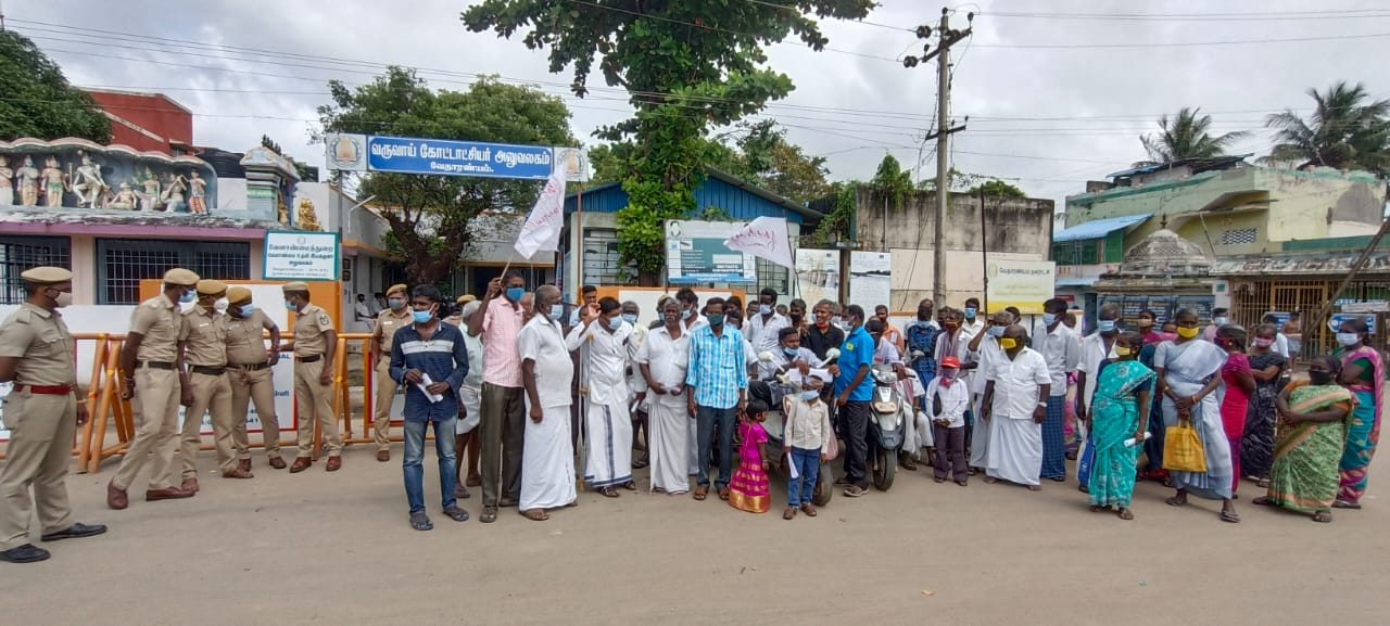 போராட்டத்திற்கு வேதாரண்யம் ஒன்றிய தலைவர் சண்முகம், இணைச் செயலாளர் பாலமுருகன், மாவட்டக்குழு ராஜேந்திரன், தலைஞாயிறு ஒன்றிய கிளைச் செயலாளர்கள் முருகையன், நாகேந்திரன், ஒன்றியத் தலைவர் குப்புசாமி, மாராச்சேரி கிளைச் செயலாளா் வெள்ளிநாதன், நாகக்குடையான் கிளைத் தலைவர் ஐயப்பன் ஆகியோர் முன்னிலை வகித்தனர்.