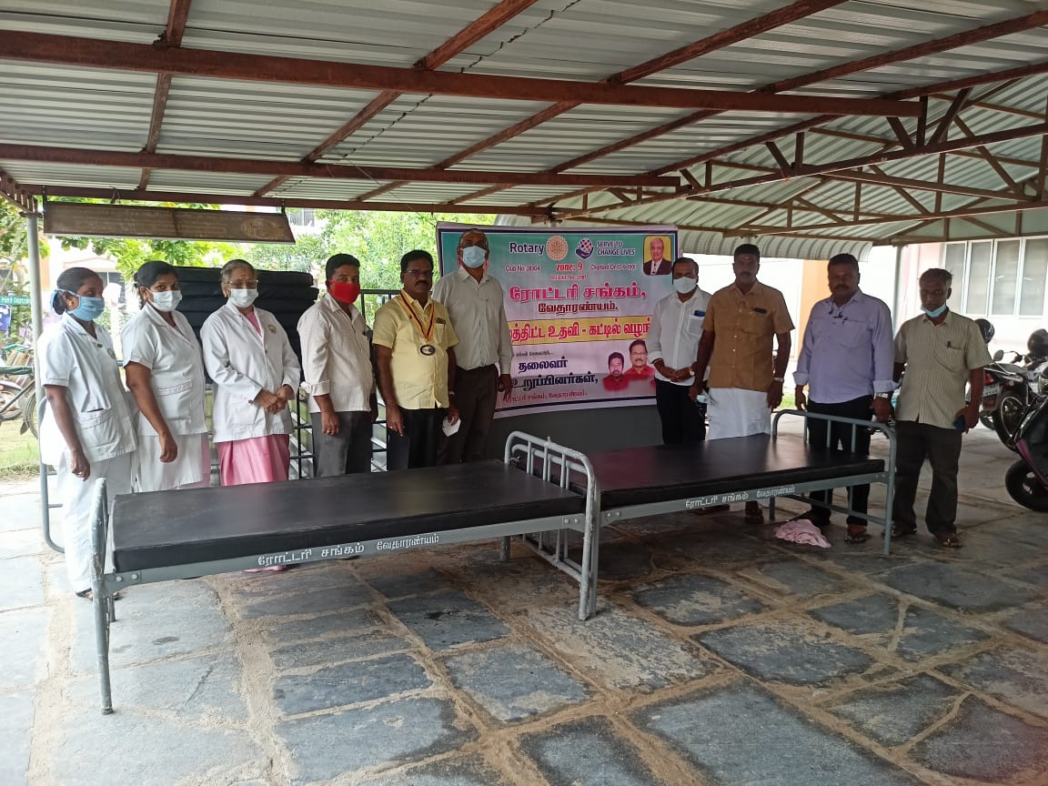 வேதாரண்யம் அரசு மாவட்ட தலைம மருத்துவமனைக்கு ரோட்டரி கிளப் சார்பில் நோயாளிகளுக்கான 20 படுக்கைகள் வழங்கும் நிகழ்ச்சி கிளப் தலைவர் புயல் குமார் தலைமையில் நடைபெற்றது.