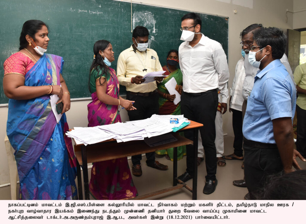 நாகப்பட்டினம் மாவட்டம் தனியார் கல்லூரியில் மாவட்டநிர்வாகம் மற்றும் மகளிர் திட்டம், தமிழ்நாடு மாநில ஊரக (ம) நகர்புற வாழ்வாதார இயக்கம் இணைந்து நடத்தும் முன்னணி தனியார் துறை வேலைவாய்ப்பு முகாமினை மாவட்ட ஆட்சியர் டாக்டர் அருண்தம்புராஜ் குத்துவிளக்கேற்றி துவங்கி வைத்தார்.