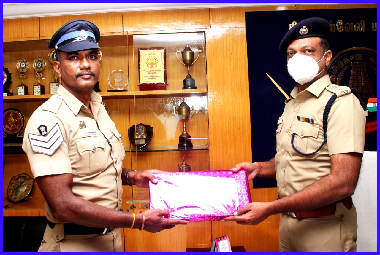 விடுப்பில் இருந்தாலும் கடமை தவறாது காவல் பணியாற்றிய காவலருக்கு திருநெல்வேலி மாவட்ட காவல் கண்காணிப்பாளர் பாராட்டு