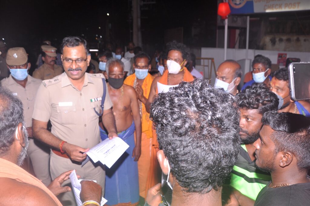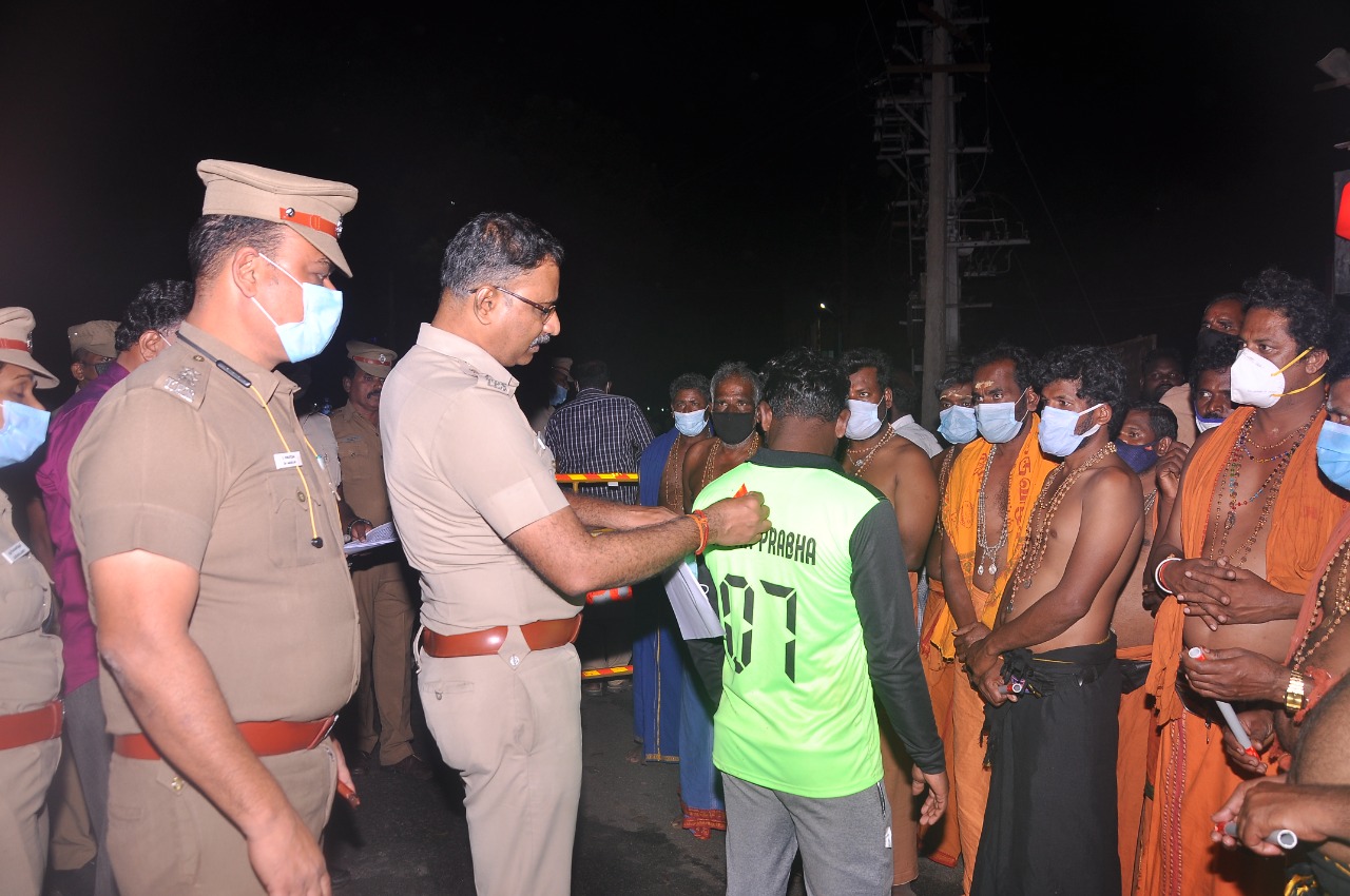 அப்போது மாவட்ட காவல் கண்காணிப்பாளர் அவர்கள் பாதசாரிகளிடம் பேசும்போது, பாதசாரிகள் திருச்செந்தூர் கோவிலுக்கு பாதயாத்திரை செல்லும் போது சாலையில் வலது பக்கம் நடந்து செல்ல வேண்டும், இரவு நேரங்களில் மிக கவனமாக செல்ல வேண்டும், சாலையோரம் ஒருவர் பின்னாடி ஒருவர் செல்ல வேண்டும். உங்கள் தோள் பைகளில் ஒளிரும் ஸ்டிக்கர்களை ஒட்ட வேண்டும், அதன் மூலம் நீங்கள் நடந்து செல்லும் போது பின்னால் வரும் வாகனங்களுக்கு உங்களை எளிதாக அடையாளம் காட்ட முடியும், இரவு நேரத்தில் பாதயாத்திரை மேற்கொள்ளும் போது கையில் டார்ச் வைத்துக் கொள்ள வேண்டும், நீண்ட தூர பயணத்தின் போது ஓய்வு எடுக்கும் போது சாலையை விட்டு தூரமாக நல்ல வெளிச்சம் உள்ள இடத்தில் ஓய்வு எடுக்க வேண்டும், ஏதேனும் உதவிகள் தேவைப்பட்டால் அருகில் உள்ள காவல் நிலையத்திலோ அல்லது காவல்துறையின் அவசர தொலைபேசி எண் 100 என்ற எண்ணையும் ஆம்புலன்ஸ் உதவிக்கு 108 என்ற எண்ணையும் அழைக்கலாம் என்றும், பாதயாத்திரையில் உங்கள் குழந்தைளை கவனமாகவும், உங்கள் உடைமைகளை பாதுகாப்பாகவும் வைத்துக் கொண்டு சாலை விதிகளை மதித்து பாதுகாப்பாக பாதயாத்திரை செல்ல வேண்டும் என்று கூறி விழிப்புணர்வு ஏற்படுத்தினார்.
