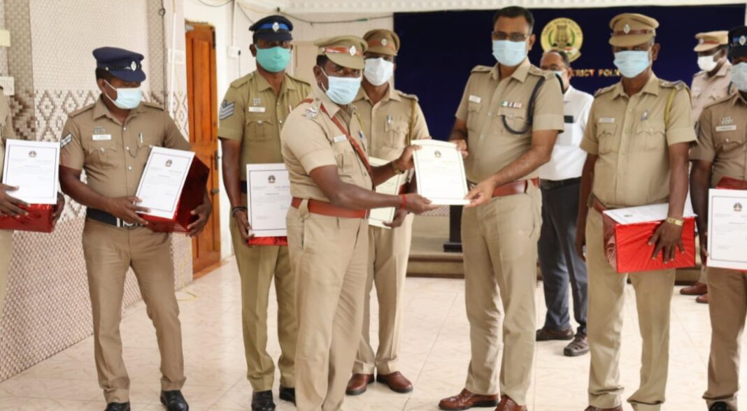 2 உதவி ஆய்வாளர்கள் உட்பட 11 காவல்துறையினரின் சிறந்த சேவையை பாராட்டி தூத்துக்குடி மாவட்ட கண்காணிப்பாளர் எஸ். ஜெயக்குமார் வெகுமதி மற்றும் பாராட்டு சான்றிதழ் வழங்கி பாராட்டினார்.