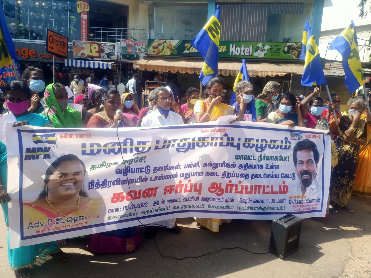 மதுக்கடைக்கு தடை விதிக்க மனித பாதுகாப்பு கழகம் சார்பில் ஆர்ப்பாட்டம்.