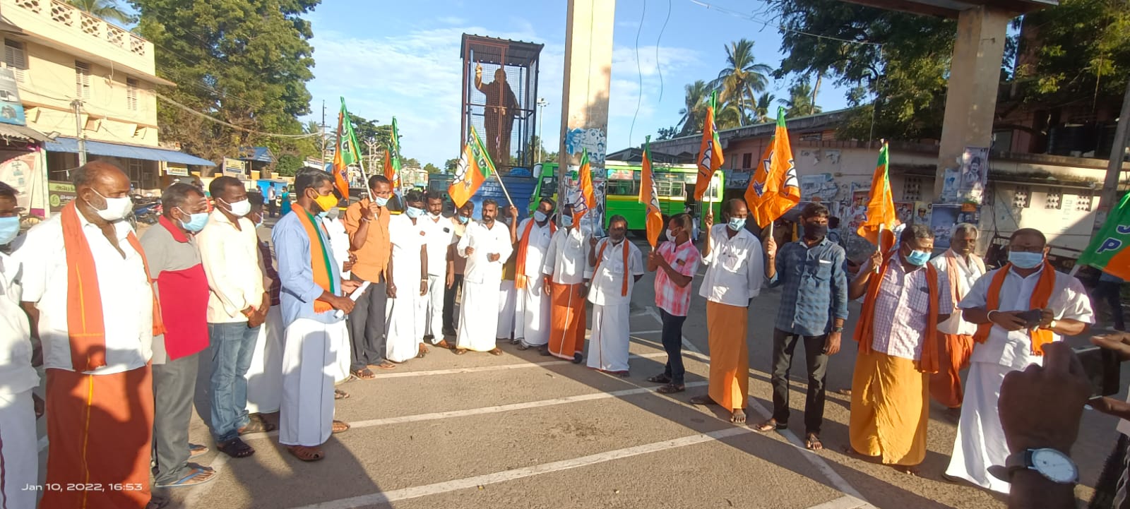 இன்று (10.01.2022) மாலை 4.30 மணி அளவில் வேதாரண்யம் அம்பேத்கர் சிலை அருகே பட்டியல் அணி சார்பாக பஞ்சாப் காங்கிரஸ் அரசு மாண்புமிகு பாரத பிரதமர் அவர்களுக்கு பாதுகாப்பு அளிக்காததை கண்டித்து நடைபெற்ற மாபெரும் கண்டன ஆர்பாட்டத்தில் பாரத ஜனதா பட்டியல் அணி மாவட்ட தலைவர்திரு. இளவரசன், வழக்கறிஞர் அணி மாவட்ட