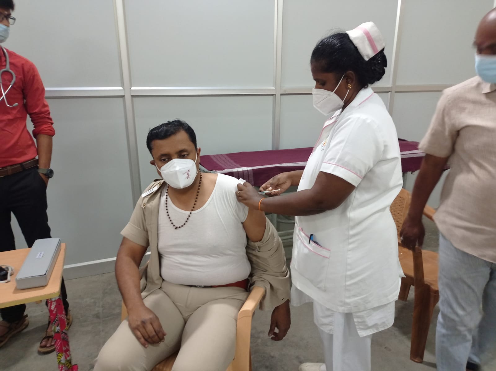 மதுரை அரசு மருத்துவமனையில் பூஸ்டர் ஊசி போட்டுக் கொண்ட மாவட்ட எஸ்.பி.