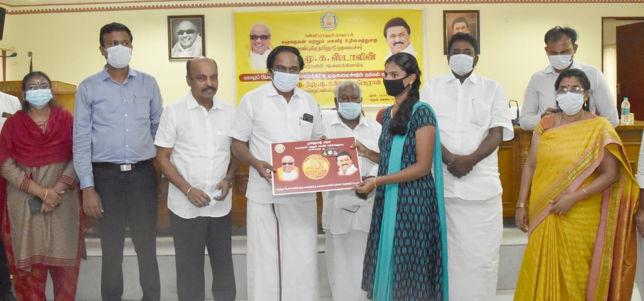 கன்னியாகுமரி மாவட்ட ஏழைப் பெண்களுக்கு திருமண நிதியுதவி மற்றும் திருமாங்கல்யத்திற்கு தங்க காசினை – அமைச்சர் மனோ தங்கராஜ் வழங்கினார்கள்
