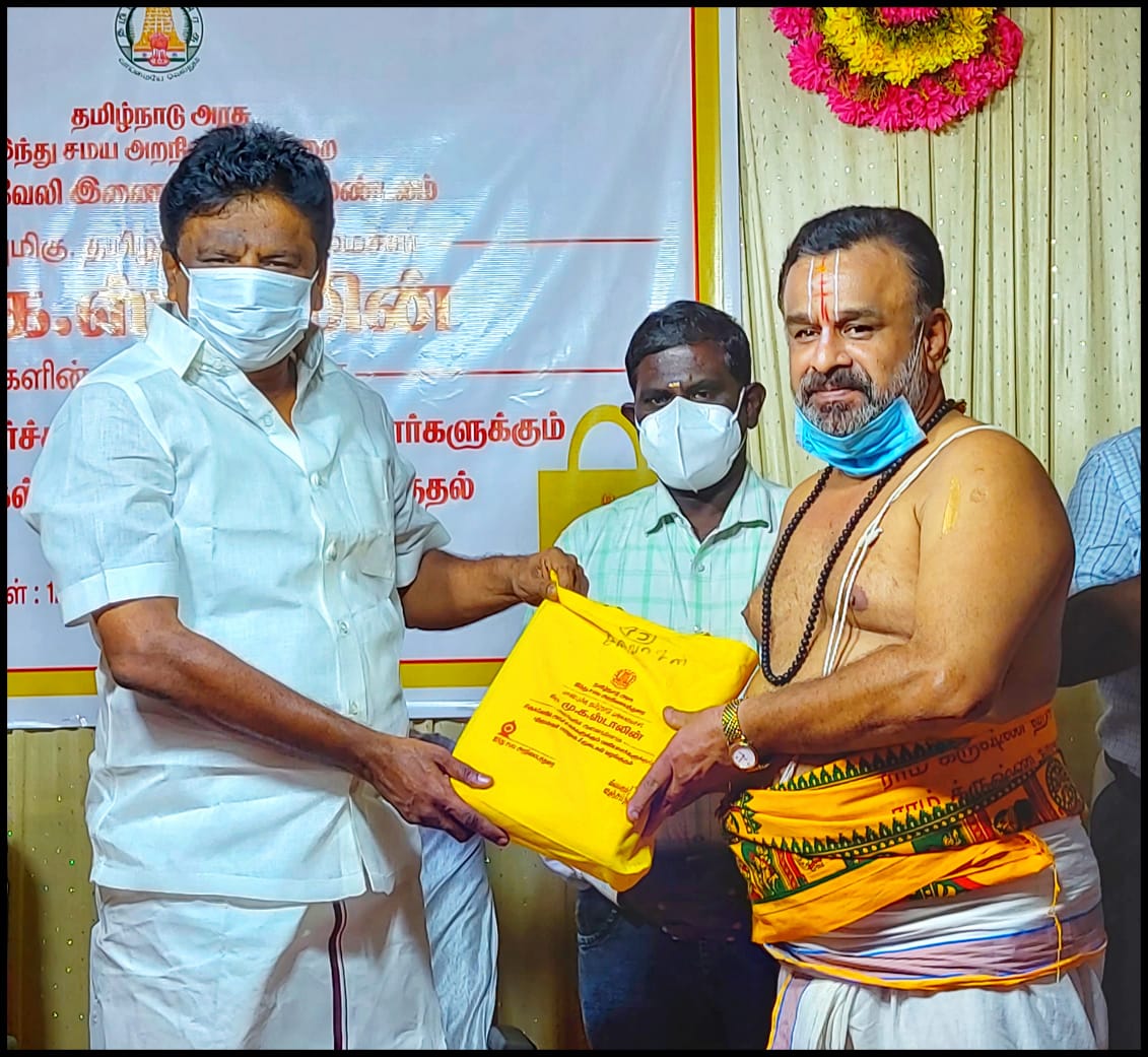 கோயில் அர்ச்சகர்களுக்கு சீருடைகள் அப்துல் வகாப் எம்எல்ஏ வழங்கினார்