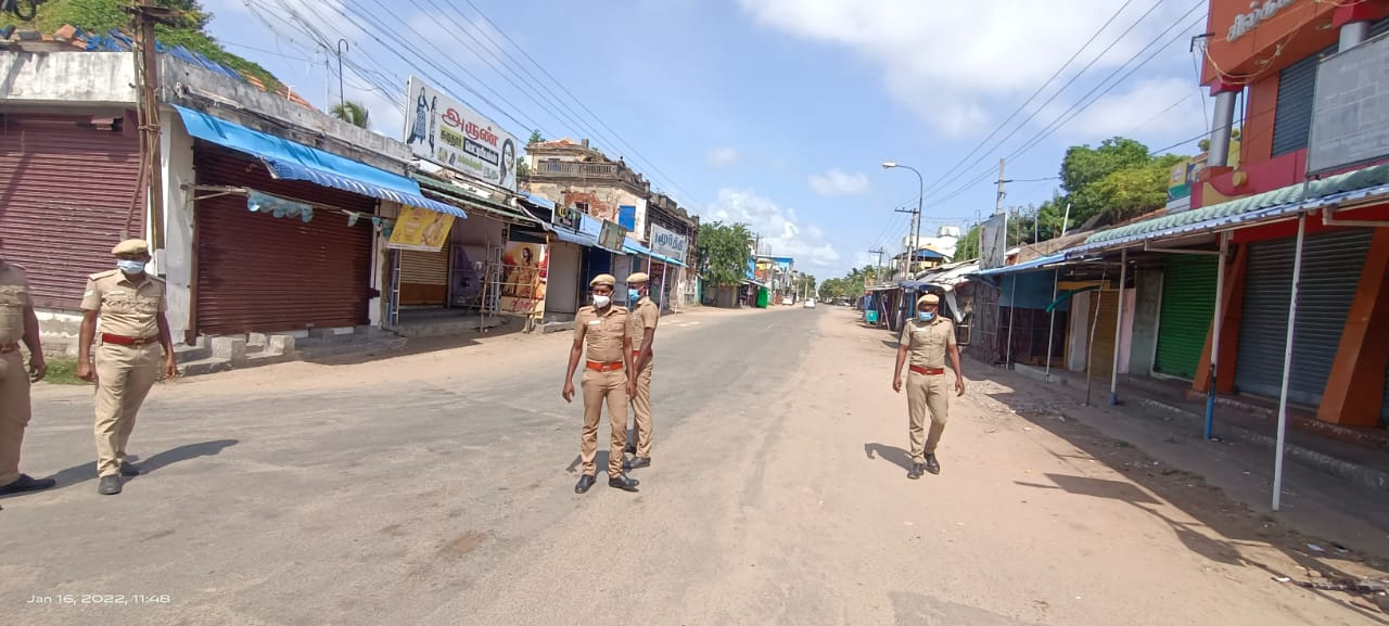 தமிழகத்தில் கொரோனா மூன்றாம் அலை பரவல் காரணமாக தமிழக அரசு ஞாயிற்றுக்கிழமை முழு ஊரடங்கு அறிவிக்கப்பட்டிருந்தது திருமணத்திற்கு முன் கூட்டிய அனுமதி பெற்ற திருமணங்கள் நூறு ஆட்களுடன் நடைபெறும் என்றும் ஹோட்டல்களில் பார்சல் மட்டுமே வழங்கப்படும் என்றும், பஸ்,ஆட்டோ, கார் போன்ற வாகனங்கள் செல்ல தடை விதித்து உத்தரவு பிறப்பித்தது அதனைத்தொடர்ந்து இன்று 16.01.2022 நாகை மாவட்டத்தில் அனைத்து கடைகளும் அடைக்கப்பட்டு இருந்தது இறைச்சிக்கடைபலசரக்கு கடை, டீ கடை, மதுக்கடை அனைத்தும் அடைக்கப்பட்டிருந்து . இருசக்கர வாகனம் ஆட்டோ, கார் பேருந்து போன்ற வாகனங்கள் செல்லாததால்சாலைகள் வெறிச்சோடி காணப்பட்டது, காவல்துறையினர் மிகுந்த பாதுகாப்பு வசதியும் செய்திருந்தனர்.