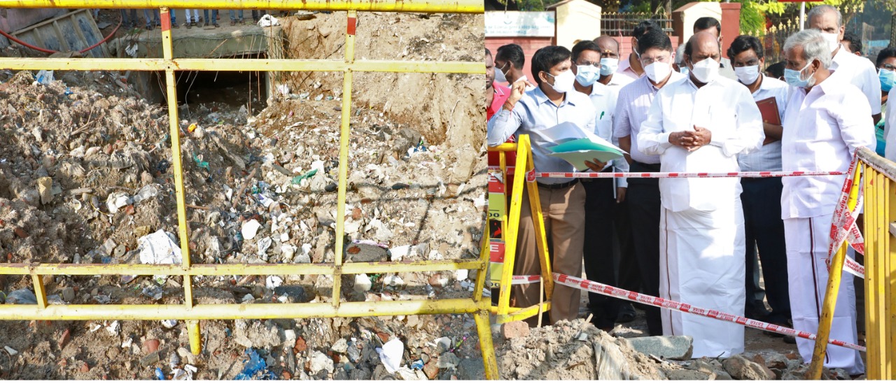 மாண்புமிகுபொதுப்பணிகள், நெடுஞ்சாலைகள்மற்றும்சிறுதுறைமுகங்கள்துறை அமைச்சர்திரு.எ.வ.வேலுஅவர்கள்இன்று (21.1.2022) வால்டாக்ஸ்சாலை மழைநீர்வடிகால்அமைக்கும்பணிகள்குறித்துஆய்வு.