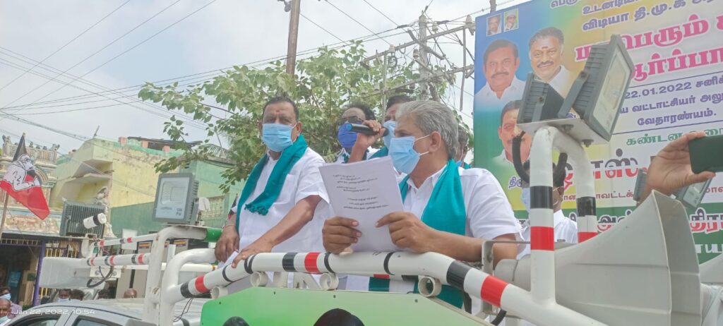 பெரு மழையால் பாதிக்கப்பட்ட விவசாயிகளுக்கு உடனடியாக நிவாரணம் வழங்க தமிழக அரசை வலியுறுத்தி நாகை மாவட்டம் வேதாரண்யம் வருவாய் கோட்டாட்சியர் அலுவலகம் முன்பாக அதிமுகவினர் கண்டன ஆர்ப்பாட்டத்தில் ஈடுபட்டனர். முன்னாள் அமைச்சரும், வேதாரணியம் சட்டப்பேரவை உறுப்பினருமான ஓ எஸ் மணியன் தலைமையில் நடைபெற்ற கண்டன ஆர்ப்பாட்டத்தில் ஒன்றிய கழக செயலாளர்கள் வழக்கறிஞர் கிரிதரன், சுப்பையன், வேதாரண்யம் நகர கழக செயலாளர் வழக்கறிஞர் எம் .நமசிவாயம் உள்ளிட்ட கழக நிர்வாகிகள் உள்ளாட்சி பிரதிநிதிகள் ஏராளமானோர் கலந்து கொண்டனர்.