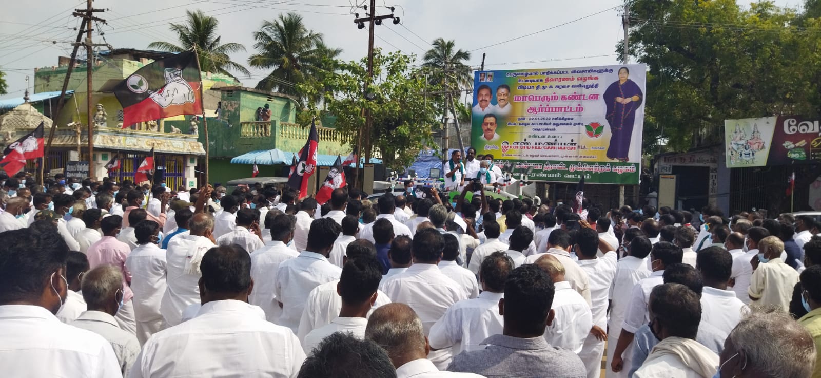 மழையால் பாதிக்கப்பட்ட விவசாயிகளுக்கு உடனடியாக நிவாரணம் வழங்க தமிழக அரசை வலியுறுத்தி அதிமுகவினர் கண்டன ஆர்ப்பாட்டம்.