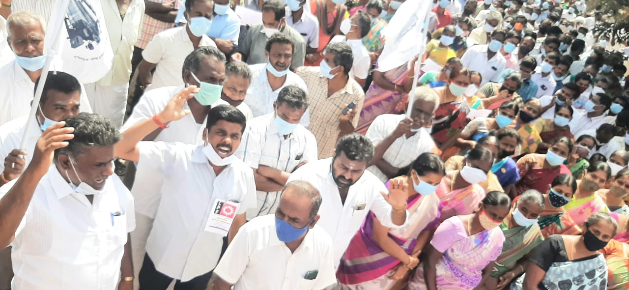 கோவை, திருப்பூர் மாவட்ட கூலிக்கு நெசவு செய்யும் விசைத்தறிகளுக்கு அறிவித்த கூலி உயர்வை அமுல்படுத்த கோரியும், 2 லட்சம் விசைத்தறியாளர்களின் குடும்ப வாழ்வாதாரம் காக்க கோரியும், கடந்த 8 ஆண்டுகளாக கூலி உயர்வு வழங்க மறுக்கும் ஜவுளி உற்பத்தியாளர்களை கண்டித்தும் திருப்பூர் மாவட்டம் பல்லடம் சாலையிலுள்ள காரணம் பேட்டை பேருந்து நிலையம் அருகில் அனைத்து தொழிற்சங்கங்கள் சார்பில் கண்டன ஆர்பாட்டம் நடைபெற்றது.