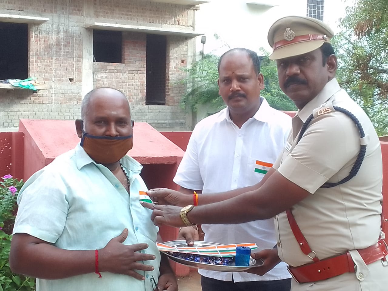 மதுரை கீரைத்துறை காவல் நிலையத்தில் காவல் உதவி ஆணையர் தேசியக் கொடியேற்றி இனிப்புகளை வழங்கினார்.